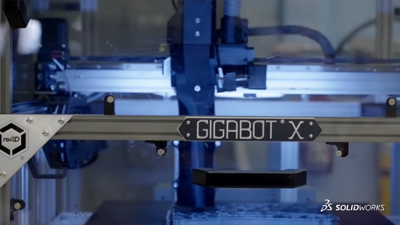 The GigabotX 3D printer, the next evolution in 3D printing technology, can print using virgin polymer pellets or recycled plastic, helping users advance toward a circular economy where materials are reused rather than discarded.